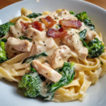 Creamy Chicken Turkey Bacon Fettuccine Alfredo with Spinach & Broccoli is a delightful dish that combines rich flavors and creamy textures, making it perfect for family dinners or special occasions. This recipe offers a comforting twist on classic fettuccine alfredo by incorporating tender chicken, crispy Turkey Bacon, fresh spinach, and vibrant broccoli. It’s a satisfying meal that balances indulgence with nutrition, ensuring everyone at the table leaves happy.