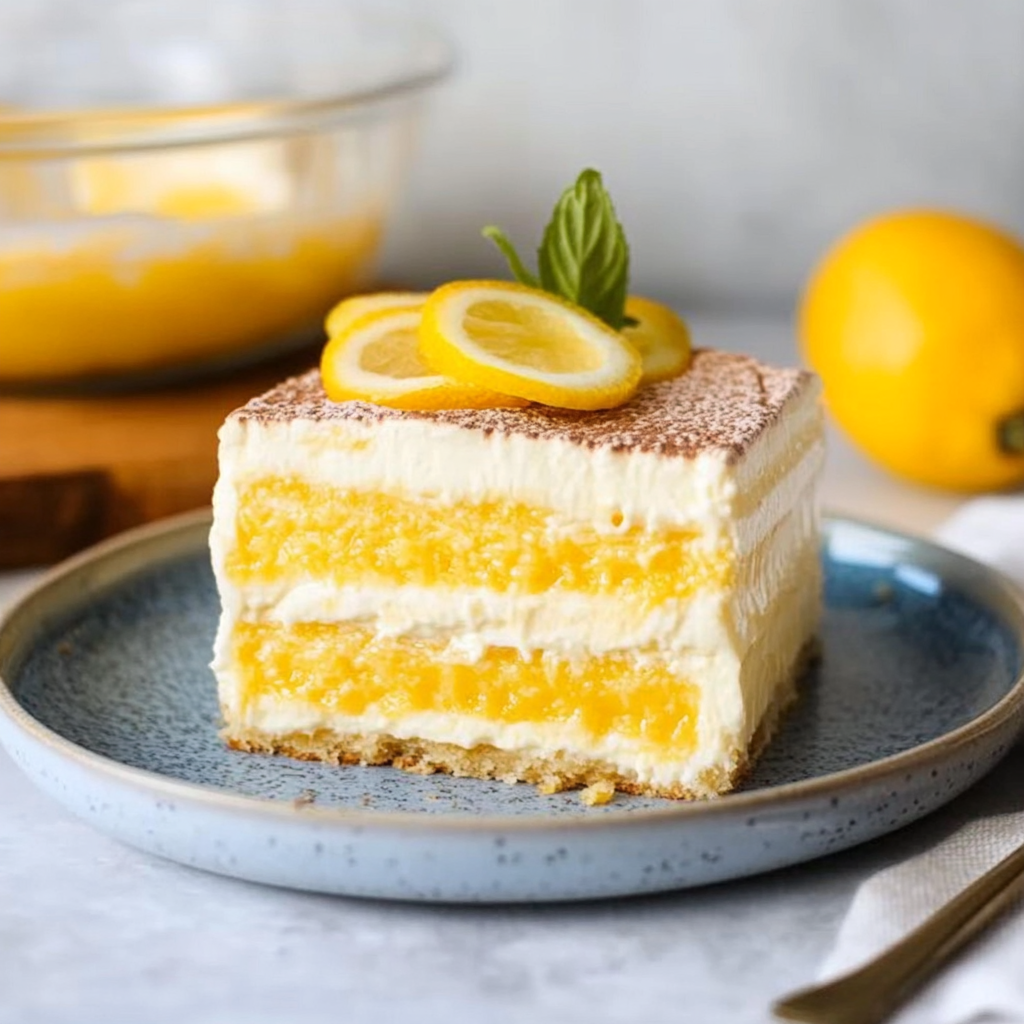 - Slice into squares and enjoy your refreshing Lemon Tiramisu!
