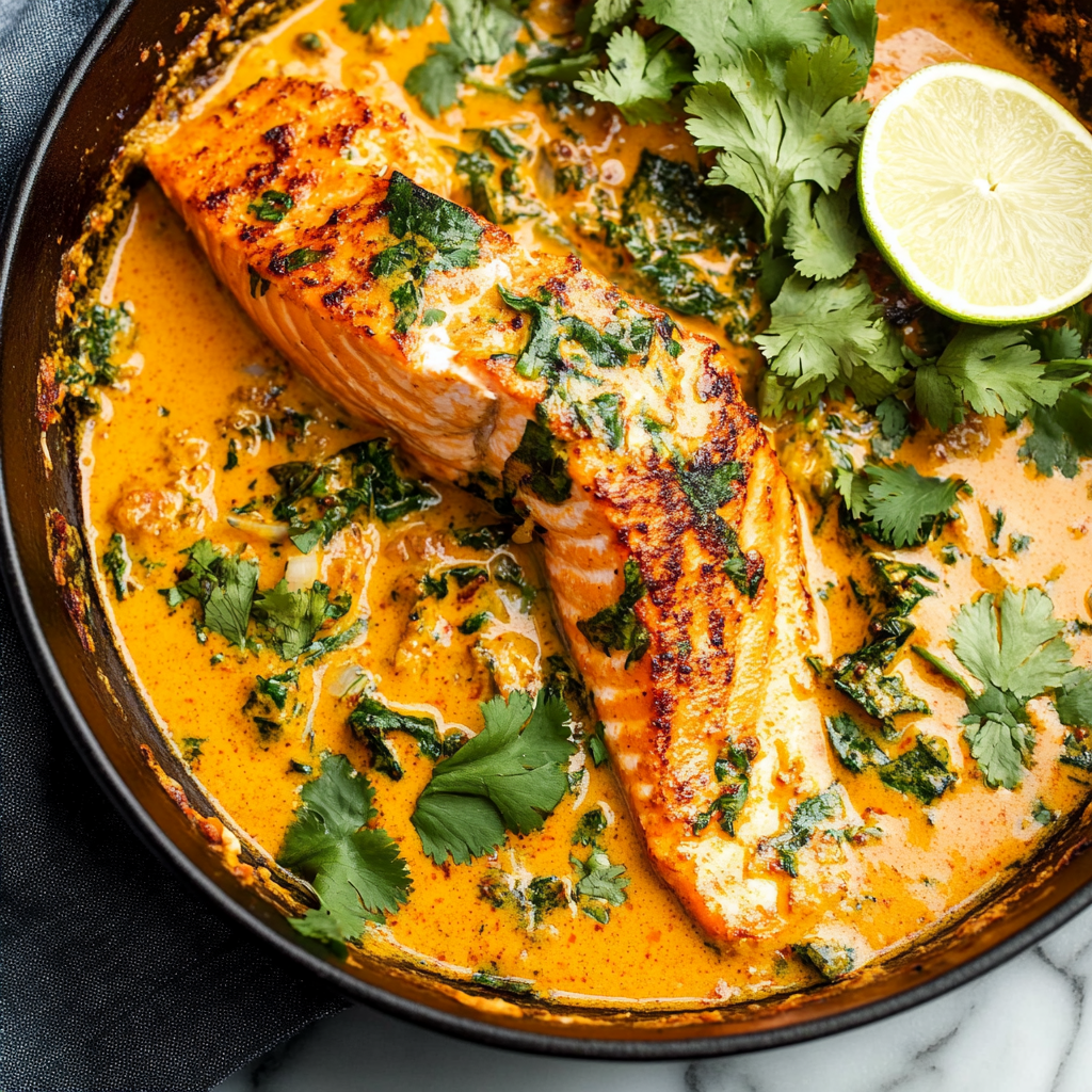 Indulge in the flavors of Thailand with this easy and vibrant Salmon Coconut Curry. This delightful dish features tender salmon cooked to perfection in a creamy coconut milk sauce, infused with aromatic Thai red curry paste. With the addition of fresh vegetables like carrots and broccolini, this recipe is not only comforting but also packed with nutrients. Ready in just 35 minutes, it’s perfect for busy weeknights or special occasions. Serve it over rice or quinoa, or enjoy it on its own for a satisfying meal that will impress your family and friends alike.