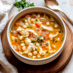 Sicilian Chicken Soup is the epitome of warmth and comfort, ideal for chilly evenings. This hearty dish features tender chicken thighs simmered in a savory broth, enriched with vibrant vegetables like celery, carrots, and bell peppers, complemented by delightful ditalini pasta.