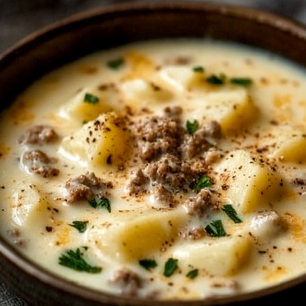 Wisconsin-Style Crockpot Creamy Potato & Chicken Hamburger Soup